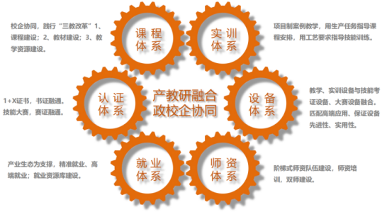 根据中央办公厅、国务院办公厅印发的《关于深化现代职业教育体系建设改革的意见》的11项重点建设指标,我们联合职业院校,完善智能制造、汽车网联、新能源光伏等领域现代产业学院的课程体系实训体系设备体系师资体系就业体系认证体系六大体系。通过推进专业与产业课程内容与岗位标准教学过程与生产过程(服务过程)学历证书与职业资格证书以及职业技能与创就业的全面对接,提升学院整体办学质量。